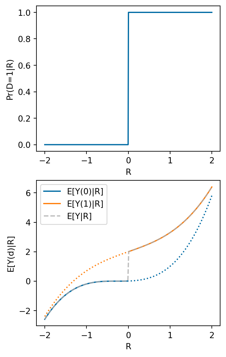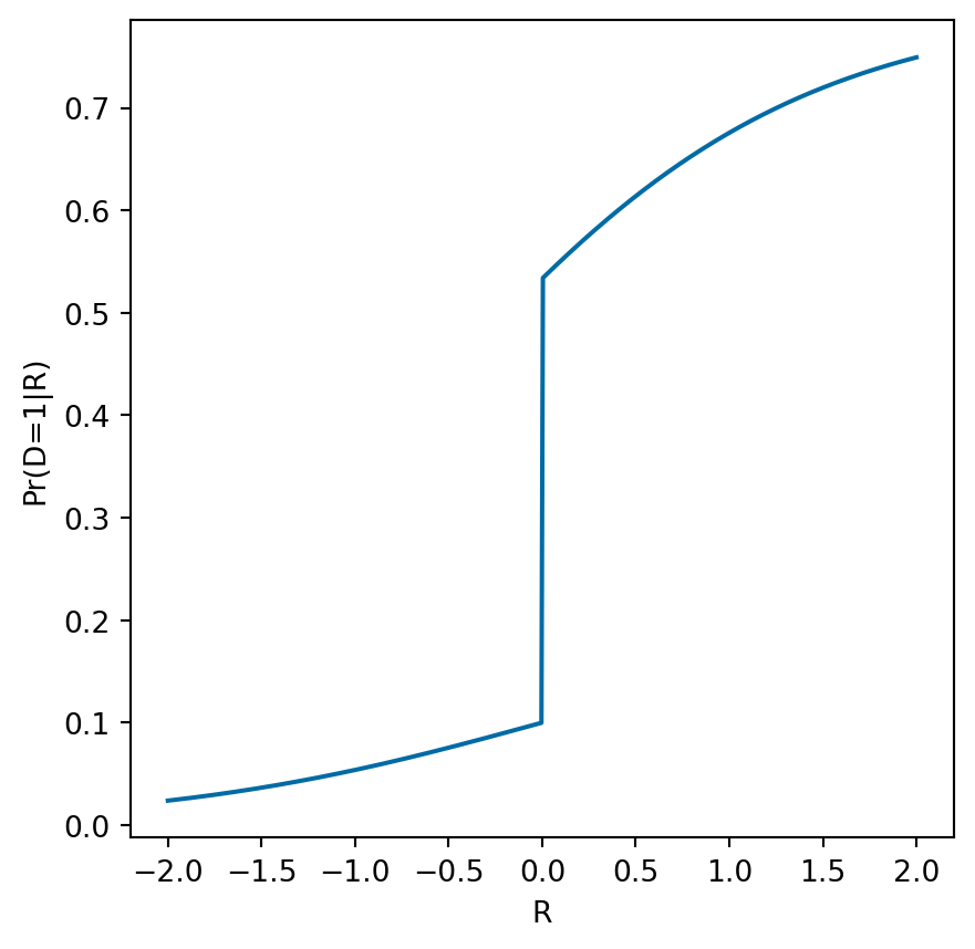 ax.plot(r, list(map(lambda r: Ey(0,r),r)), color='C0', label="E[Y(0)|R]")