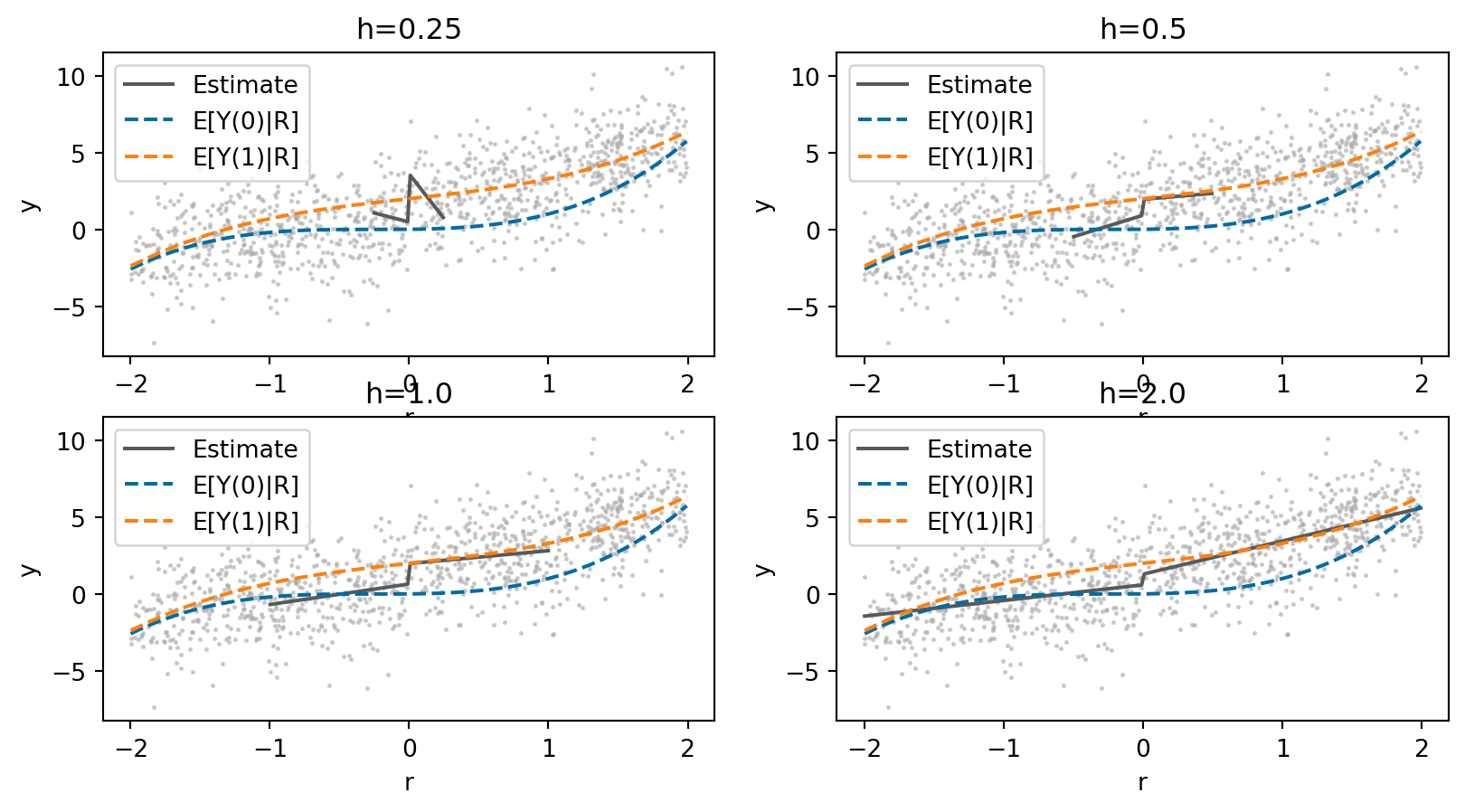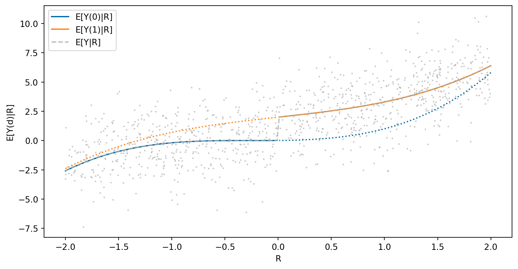 ax.plot(r,list(map(lambda r: pdr(r)*Ey(1,r) + (1-pdr(r))*Ey(0,r),r)), color='C2', label="E[Y|R]", linestyle="--", alpha=0.8)
